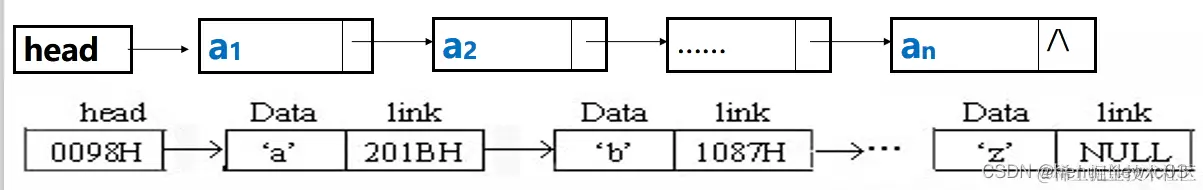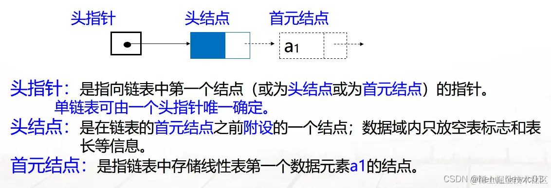 - 在单链表中,除了首元结点外,任一结点的存储位置由其直接前驱结点的链域的值指示。