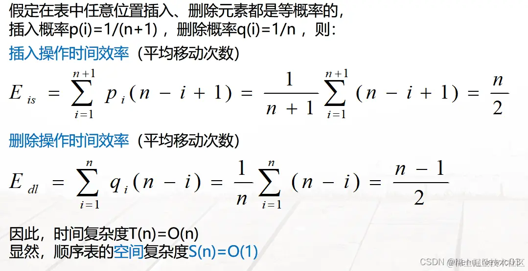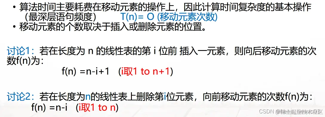 1. 在顺序表中插入或删除一个元素,需要平均移动 n/2或n-1/2 元素,具体移动的元素个数