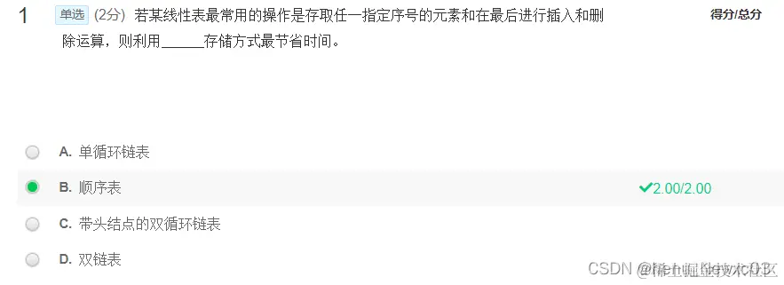 =1.当线性表的长度变化不大,易于事先估计其大小时,为了节约存储空间,宜采用顺序存储作为存储结构。
