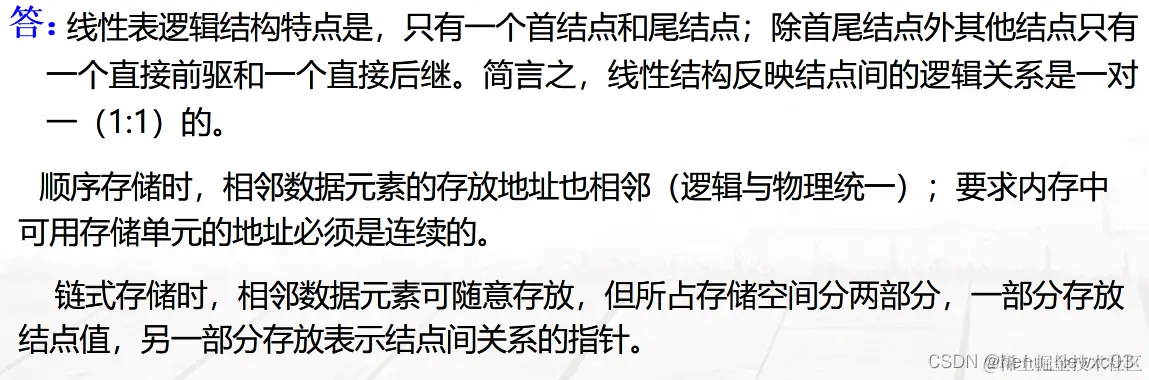 讨论1:线性表的逻辑结构特点是什么?其顺序存储结构和链式存储结构的特点是什么?
