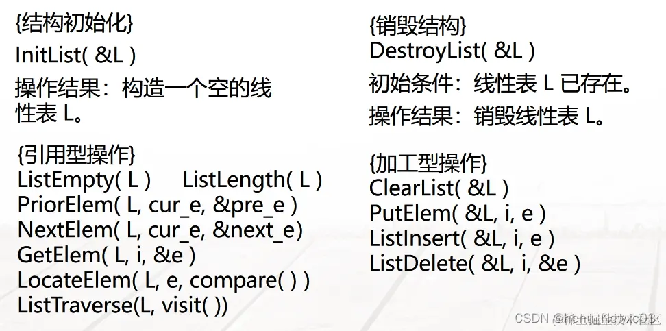 # define LIST_INIT_SIZE 100 //符号常量 // 线性表存储空间的初始分配量 # define LISTINCREMENT 10 // 线性表存储空间的分配增量 typedef struct { //typedef 给结构类型起别名 ElemType *elem; //表基址 int length; //表长(特指元素个数) int listsize; //表当前存储容量 }SqList -