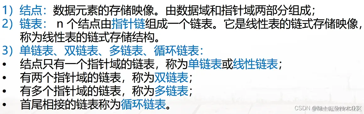- **链式存储特点:**逻辑上相邻,物理上不一定相邻