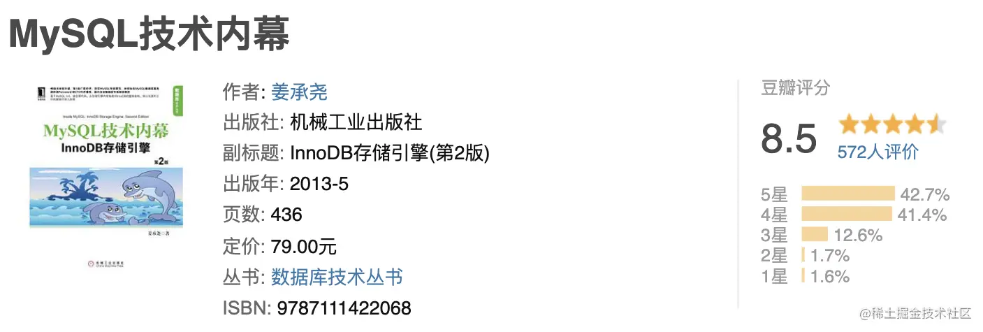 学习建议:建议买本MySQL的书籍,上面两本任意买一本就可以,我看的第一本MySQL书籍是《MySQL技术内幕》,因为是第一次看,很多地方看不懂,后来看了第二遍,才明白里面的核心知识,所以这本书可能需要多看几遍。《高性能MySQL》也看过,这个更容易理解一些,但是太厚,可以选取感兴趣的章节。