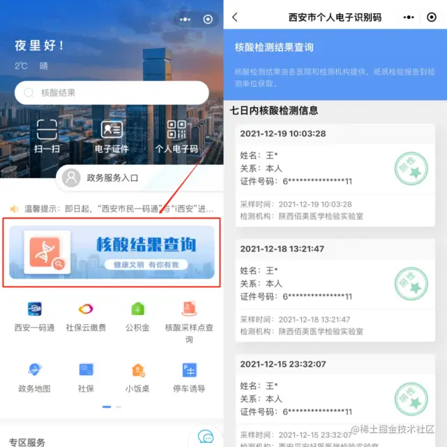 第一次改版新增了疫苗接种信息,加了一个边框;第二次改版新增了核酸检测信息,在最下方展示核酸检测时间、结果。