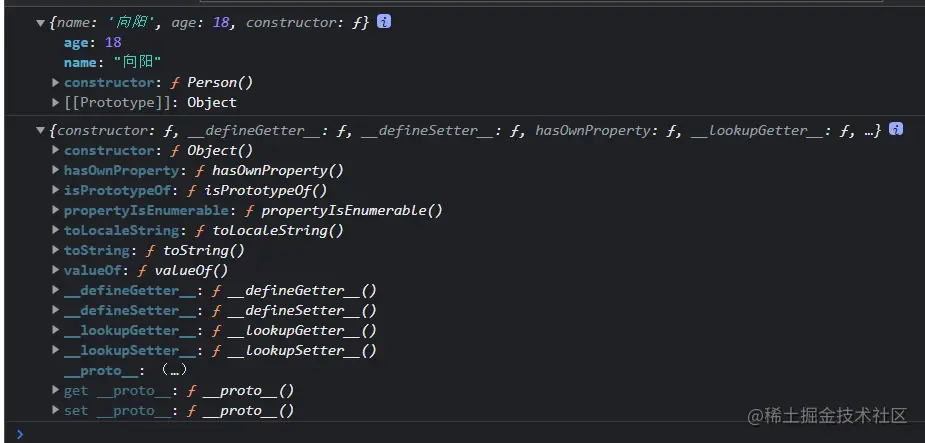 那这个对象的构造函数是谁呢?通过 constructor 我们可以看到这个对象的构造函数其实是 Object。