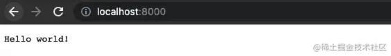 这个程序非常简单,就是启动一个简单的web服务器程序并监听8000端口,当使用浏览器访问IP:8000/这个地址的时候,程序会给浏览器返回Hello world!