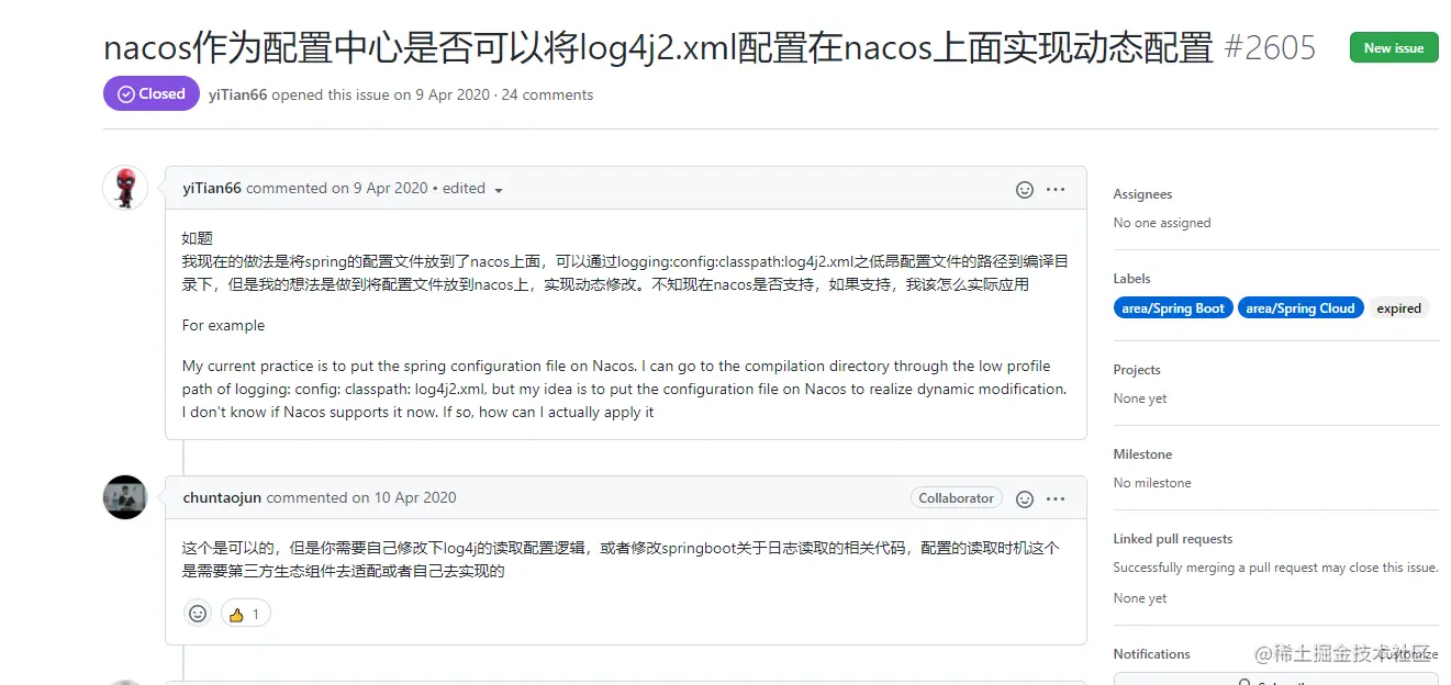 但是正常情况下我们是无法控制log4j的配置文件的,所以是比较鸡肋的,但是一些可以动态配置服务的,例如nacos,也许可以找到利用方式。