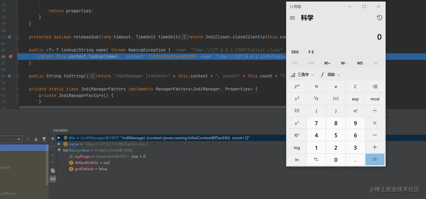 最终在jndiManager类,用java原生的javax.naming.InitialContext.lookup 去访问,这一步是经典的JNDI注入,从而造成RCE。
