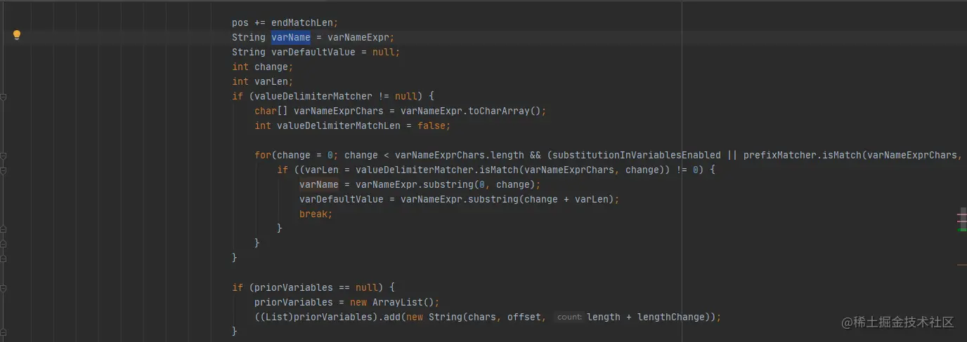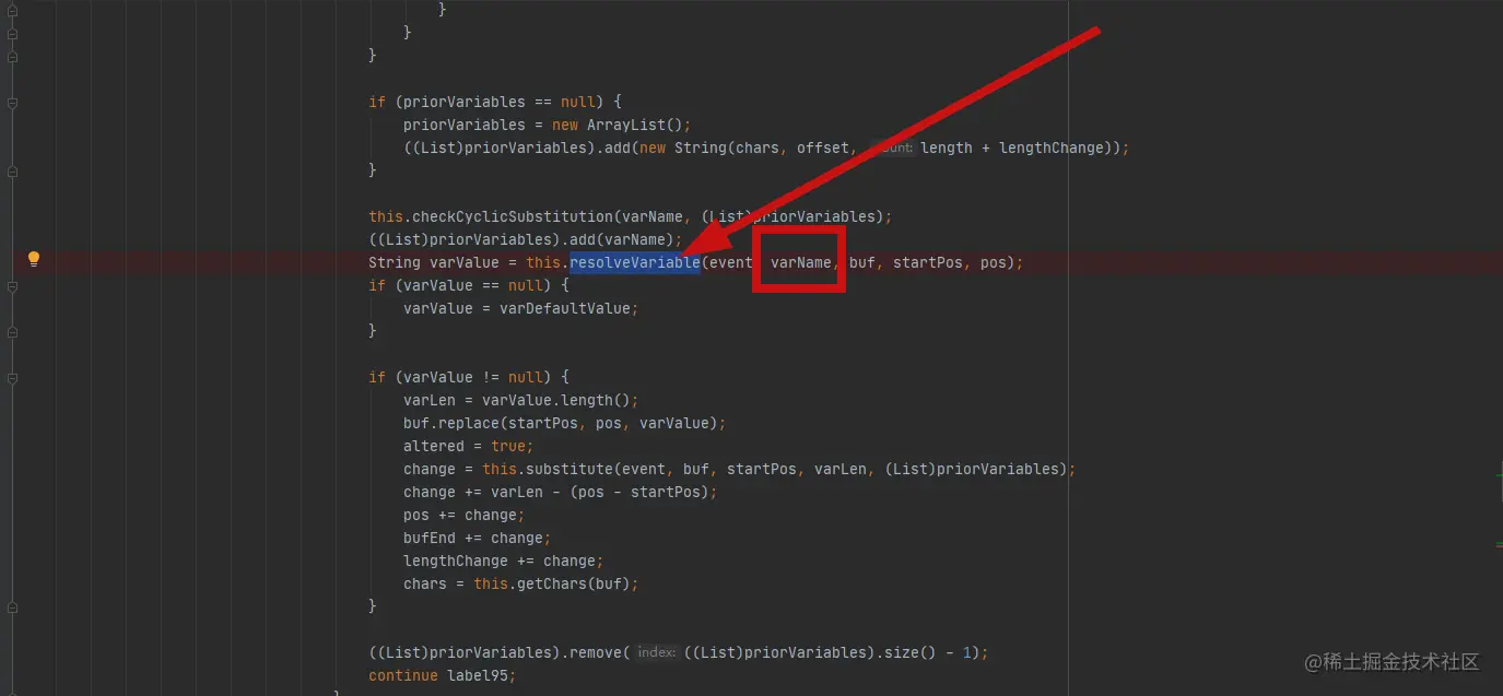 在374行会varName会作为参数传给resolveVariable: