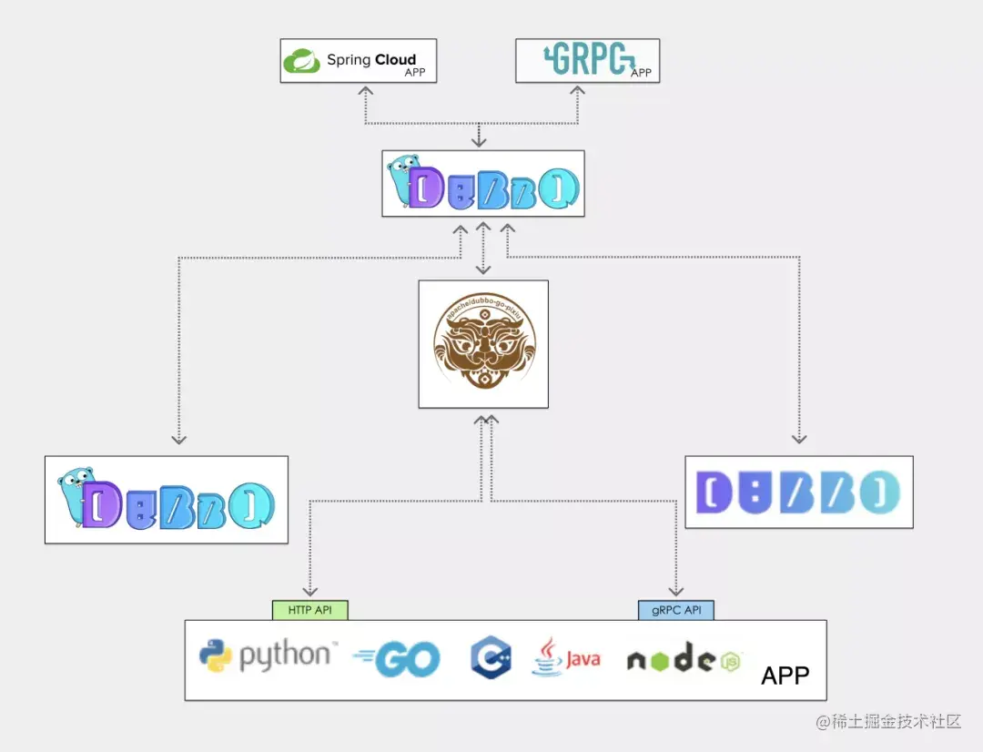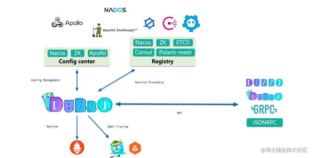 开发者可以使用 Dubbo-go 框架高效地编写 RPC 服务,并支持与 Dubbo、gRPC 服务跨语言互通;您可以使用 Dubbo 生态强大的服务治理能力和运维能力,例如服务注册发现、负载均衡、配置中心、可视化等功能;您也可以使用 Dubbo-go 生态的 pixiu 网关将服务暴露给集群外部访问。