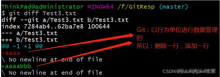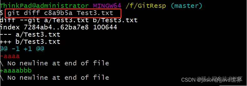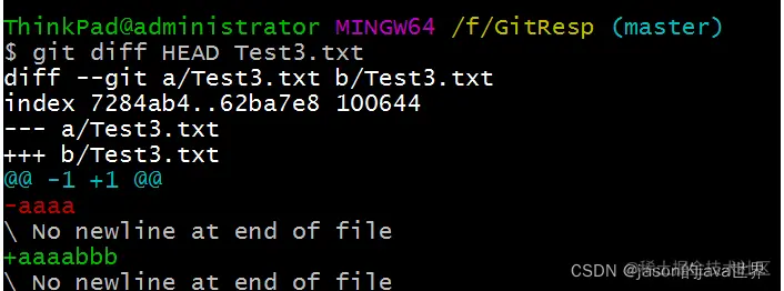 总结: git diff [文件名] ---》 将工作区中的文件和暂存区中文件进行比较