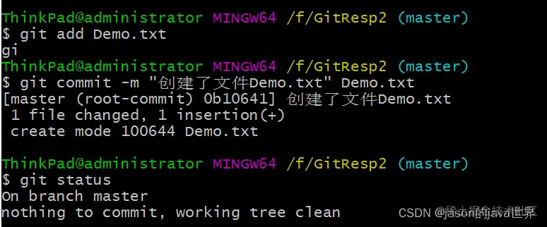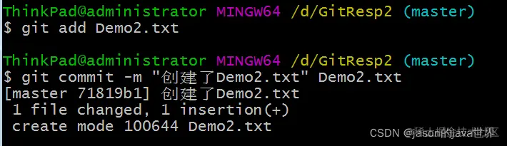 git commit -m "这是我第一次提交的Demo.txt" Demo.txt
