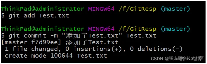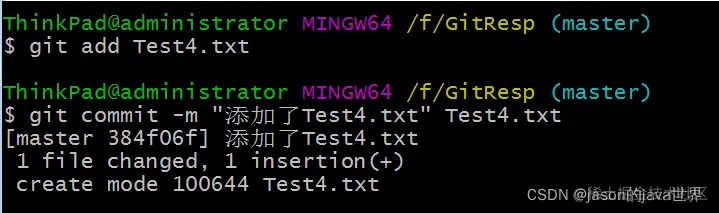 【1】在工作区创建一个Test4.txt文件,然后提交到暂存区,提交到本地库: