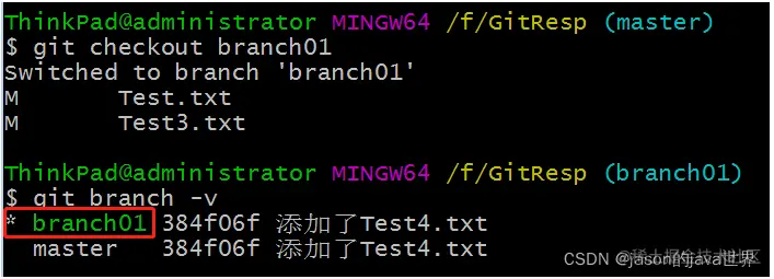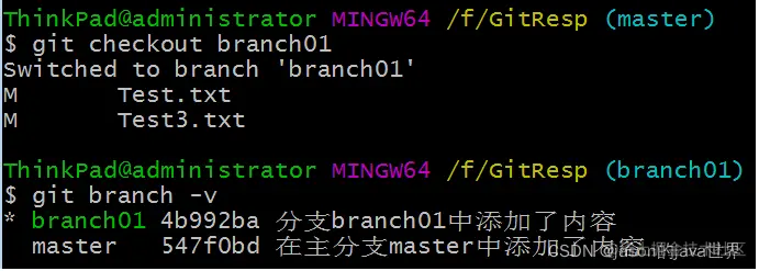 【3】再次切换到branch01分支查看: