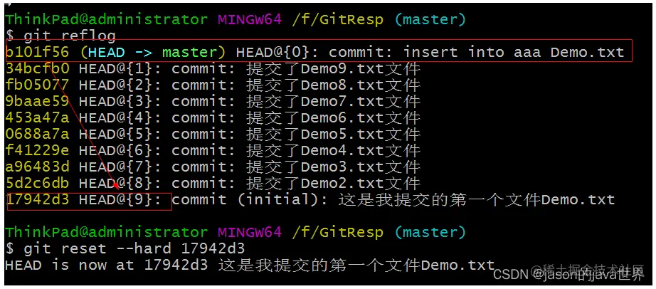 reset命令:前进或者后退历史版本