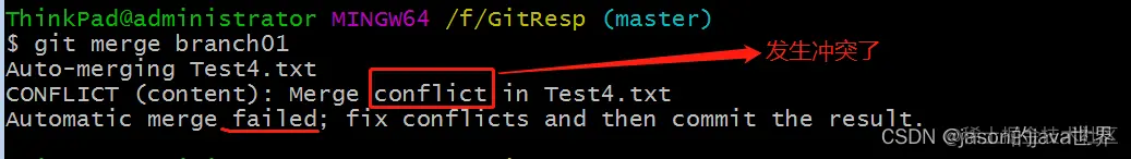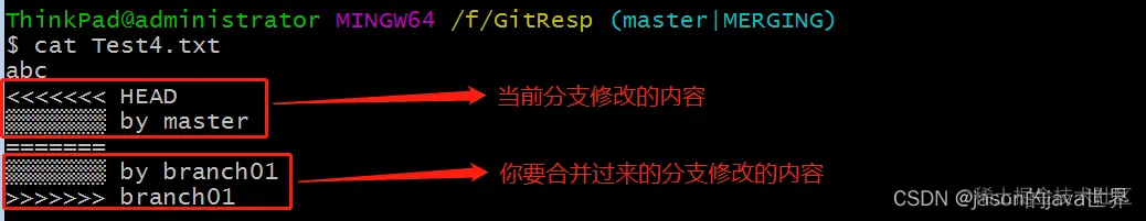 (2)将branch01中的内容和主分支内容进行合并: