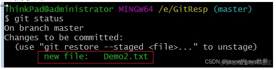 把Demo2.txt提交至暂存区