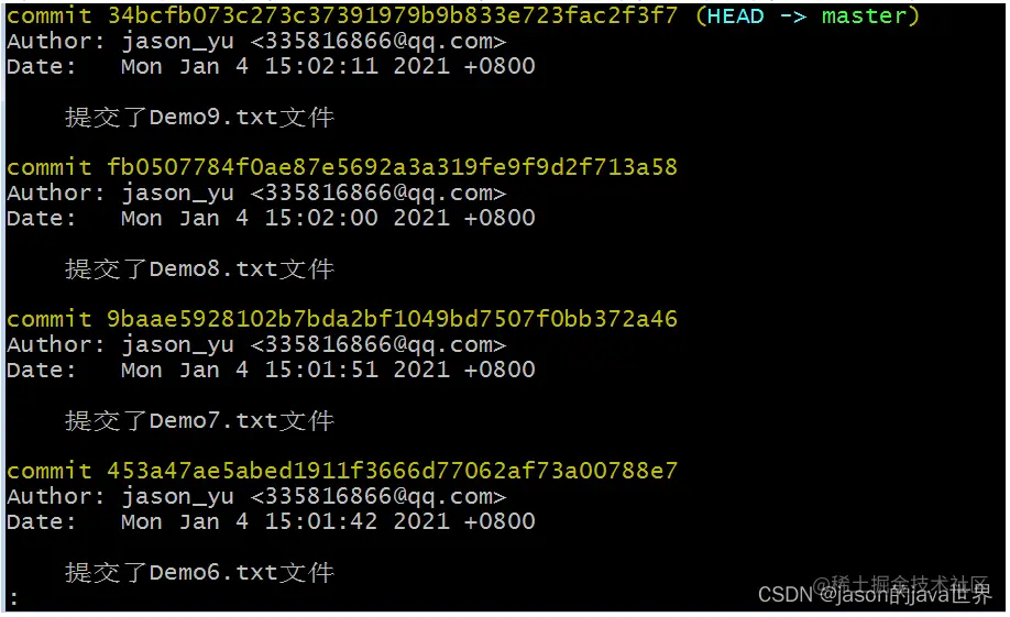 【1】方式1:git log --->分页