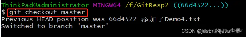 【2】将分支切换到master:
