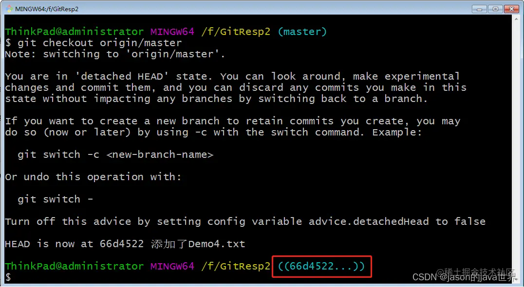 【3】后悔了:实际上就是把指针指到添加的那个历史版本就可以了。