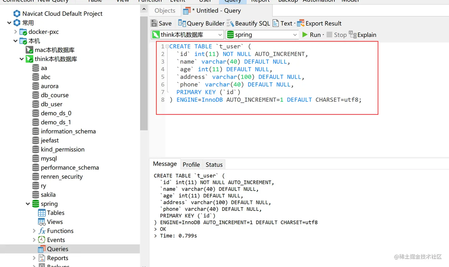 3.创建表t_user
