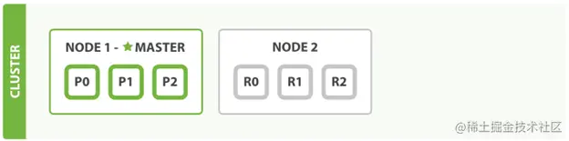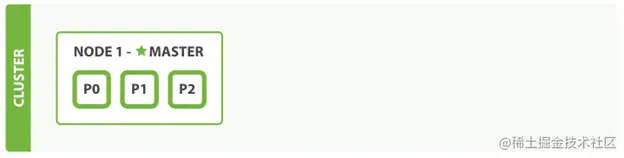 一个只有一个node的cluster如下图所示,因为只有一个node,所以它也必然会成为master。