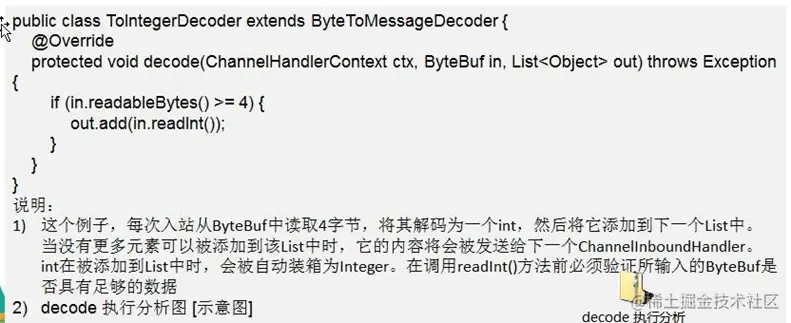 不论解码器 handler 还是 编码器 handler 即接收的消息类型必须与待处理的消息类型一致,否则该 handler 不 会被执行 在解码器 进行数据解码时,需要判断 缓存区(ByteBuf)的数据是否足够 ,否则接收到的结果会期望结果可能 不一致