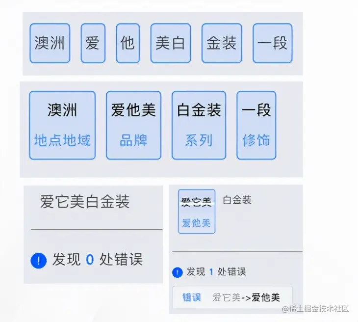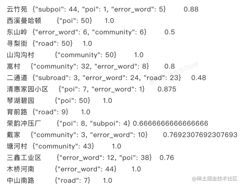 我们的工具可以自动发现出场景中的这些新词,并对这些新词做实体标签的预测,可以看到括号中的这些新词是在不同的上下文中预测出的,标签的一个分布从而指导我们去判断这个新词它是否是一个合法的新词,以及它属于的实体标签到底是什么,为我们的模型去提供最关键的信息。