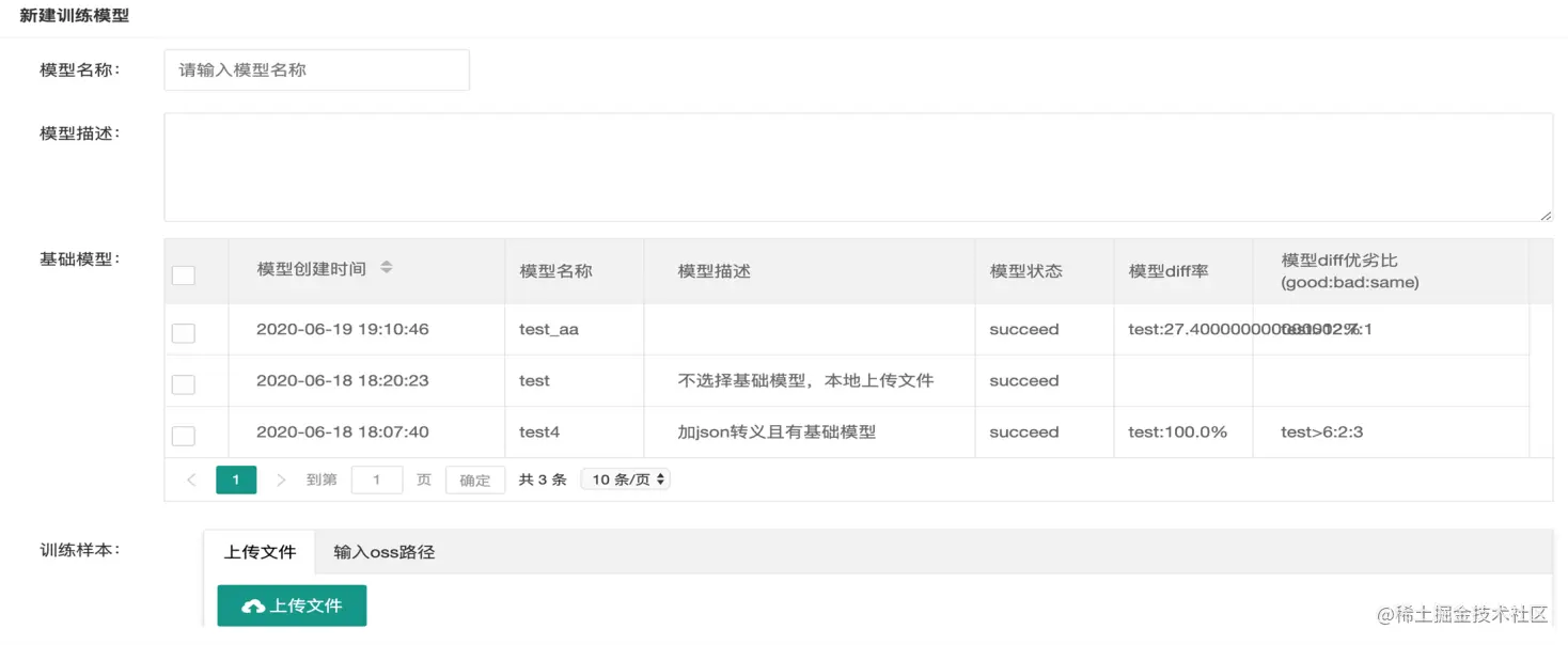 下图是我们做的一个工具demo,上面是创模型,创建部分客户可以选择基础的行业模型,然后上传自己的领域无标注的数据就可以自动的开始模型的训练。