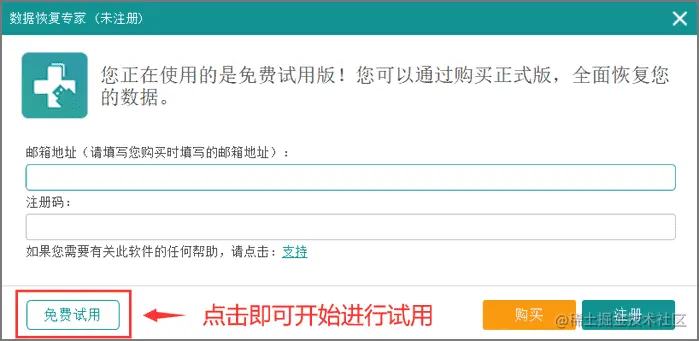 步骤2.在弹出的注册界面点击“免费试用”进入主操作界面;