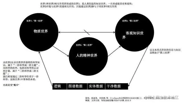 - **世界3:**是客观知识世界,包括由各种载体记录并储存起来的文化、文明、科学技术等理论体系的人类精神产物。