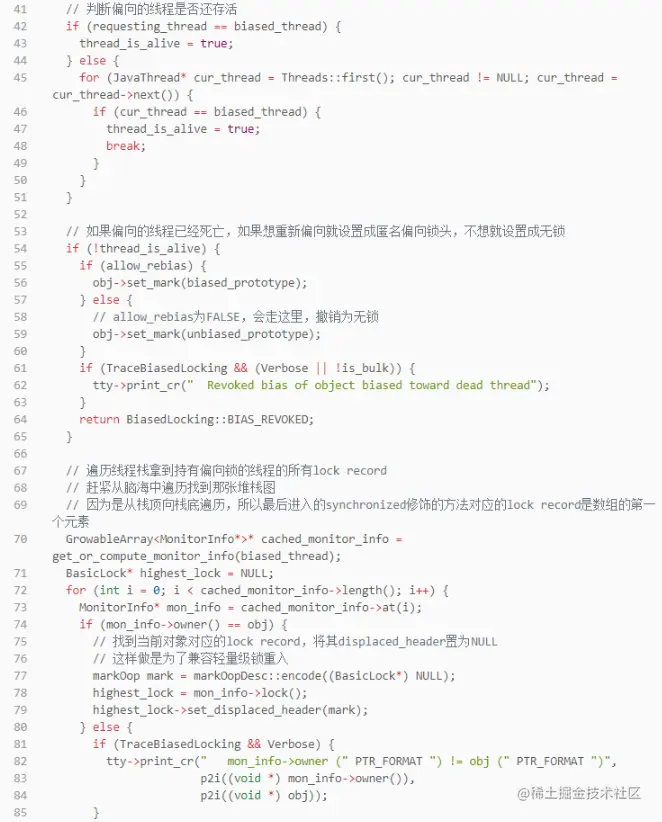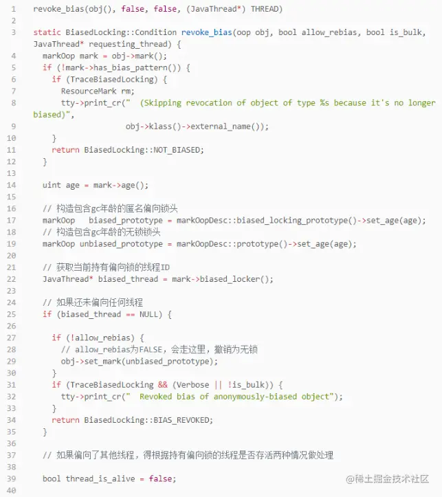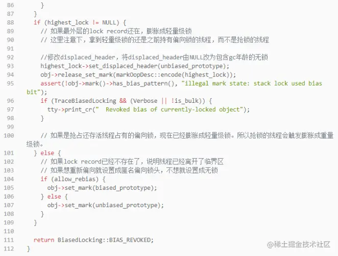 这个方法是理解偏向锁的核心方法之一,小伙伴们一定要多看多想多悟,悟透,不然学到后面一团糟。