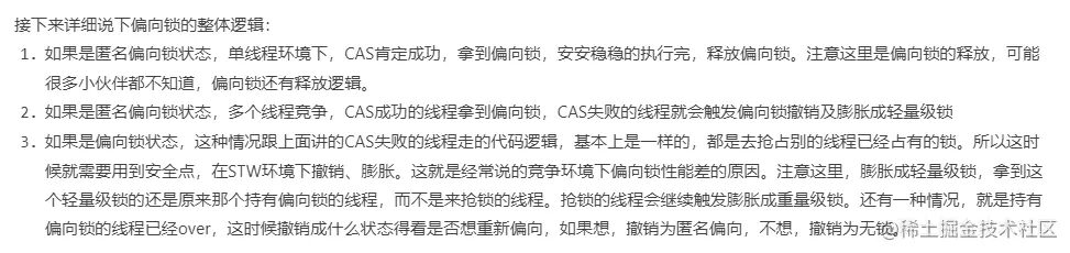 至此,偏向锁的核心逻辑就讲完了。其他的知识点,感兴趣的小伙伴,可以基于理解我分享的这些,去自行研究。相信小伙伴们都能征服synchronized。