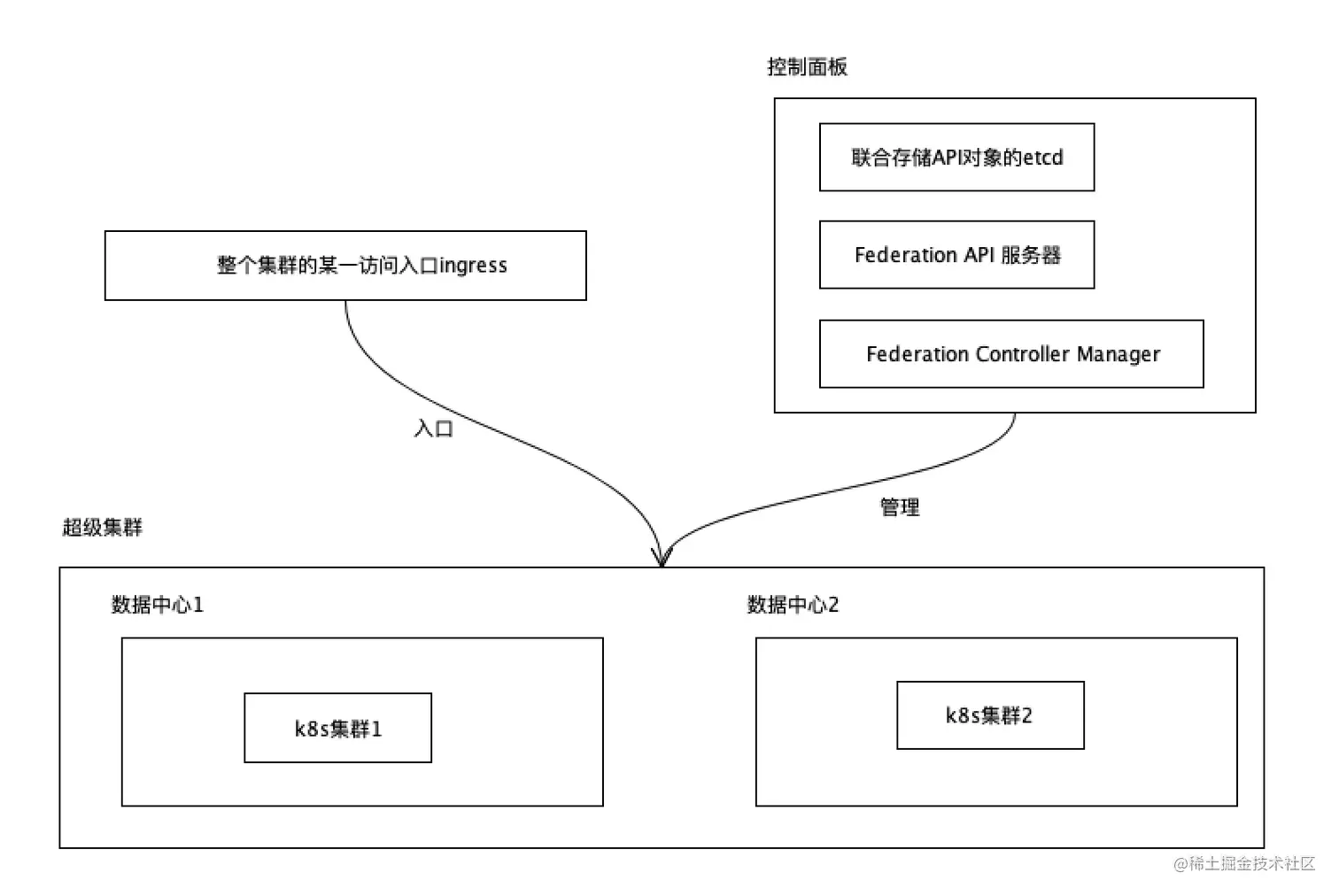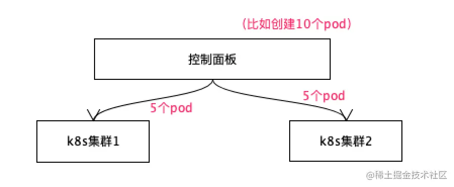 2、通过公共的控制面板来管理超级集群中的2个节点(每个节点代表一个k8s集群)