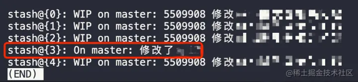 可以看到在直接执行 stash 指令时,大量 WIP on master,并且后面的信息为上一次提交的 commit,功能区分不明确,没有办法区分具体改了什么功能。