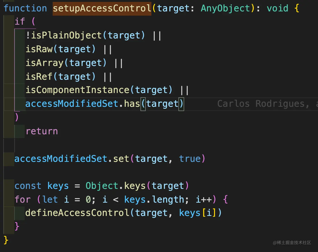 reactive定义了一个空对象,然后下方数据更新时去改变数据想的是不是很美好,但是事实总是事与愿违😔 组件里面拿到的数据始终没有更新!难道是响应式不管用了?网上搜了很多方法,也没错啊,认真观察了博客上好像都定义了初始值,最后加了以后,还真的管用了!😌 为了加深理解去看了一下composition-api库的源码,源码里面关于reactive方法有这样一个判断,Object.getOwnPropertyDescriptor(),会去获取对象里面的单个属性的描述符,这里我们获取不到property,接下来执行setupAccessControl方法,val是undefined,执行结束,执行proxy方法, 得到的也是undefined所以没有变成响应式。