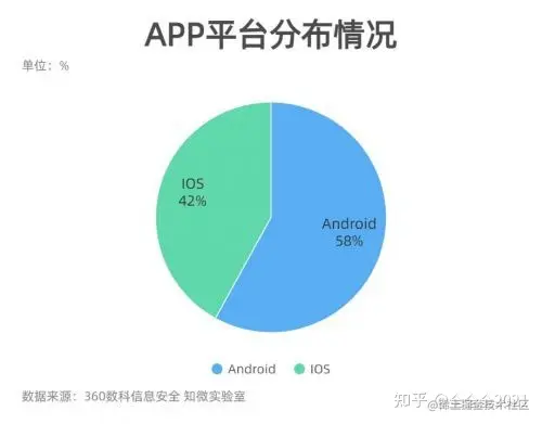 报告指出,被电信网络诈骗犯罪利用的网络赌博、刷单类APP排名前列,占比分别达27.3%、13.4%,金融诈骗类APP占比排名第4,占比9.6%。黑灰产平台分发APP面向的手机系统,流向Android平台占比58%,而流向iOS平台的分发已呈现出逐步追赶趋势。