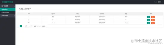 首先管理员支持查看所有用户的信息,同时支持编辑和删除