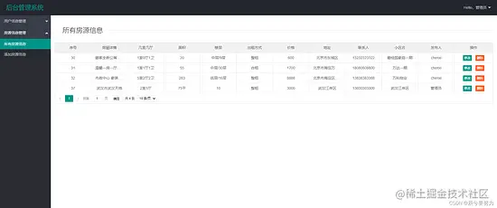 管理端可以查看相关房源信息,普通用户也可以查看自己发布的房源信息