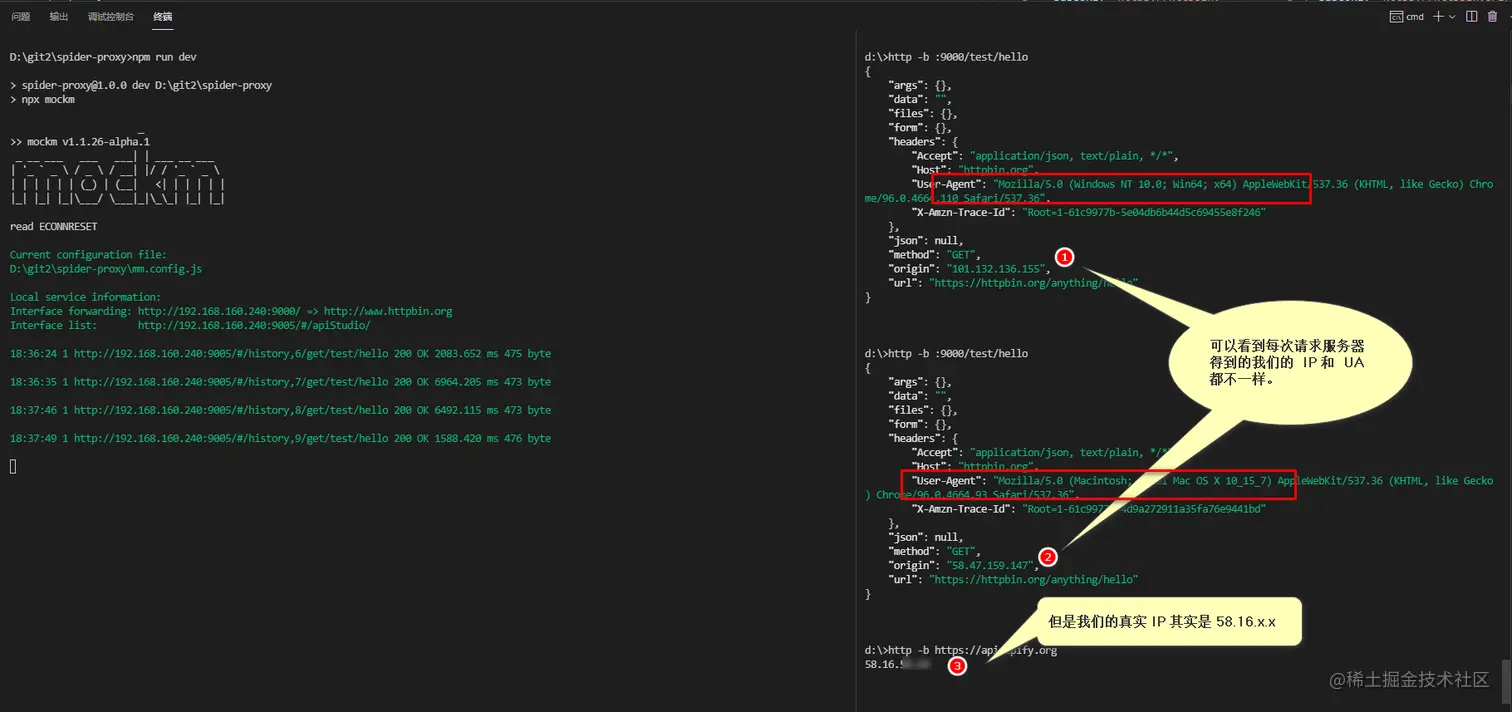 这个项目使用 node 实现了随机应用代理, UA信息来请求接口的 demo, 并介绍了如何搭建代理池等功能.