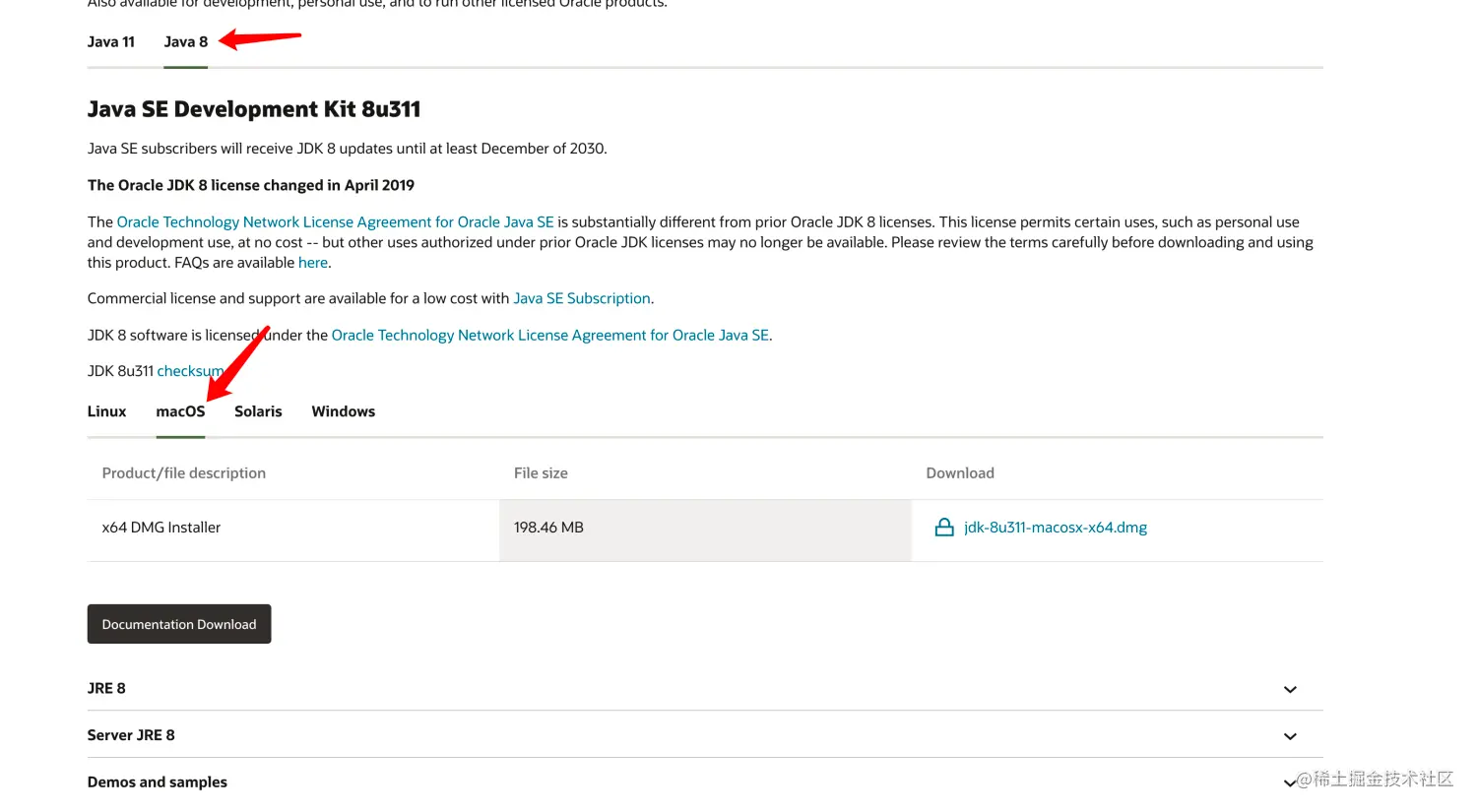首先需要安装 JDK 8,JDK 就是研发 Android 应用的官方环境,点击 这里 下载(我的链接也是适用于 Mac 电脑,如果你的电脑不一样需要切换一下)。