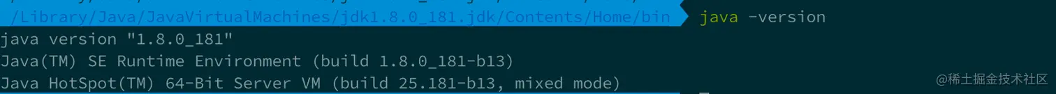 配置完毕后,我们就可以验证 Java 环境配置是否正确了,依然在终端中输入
