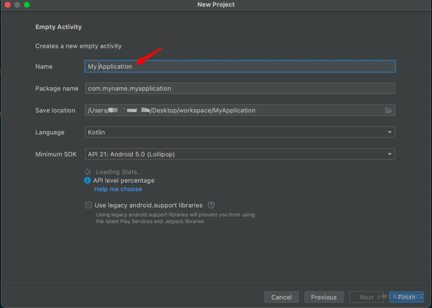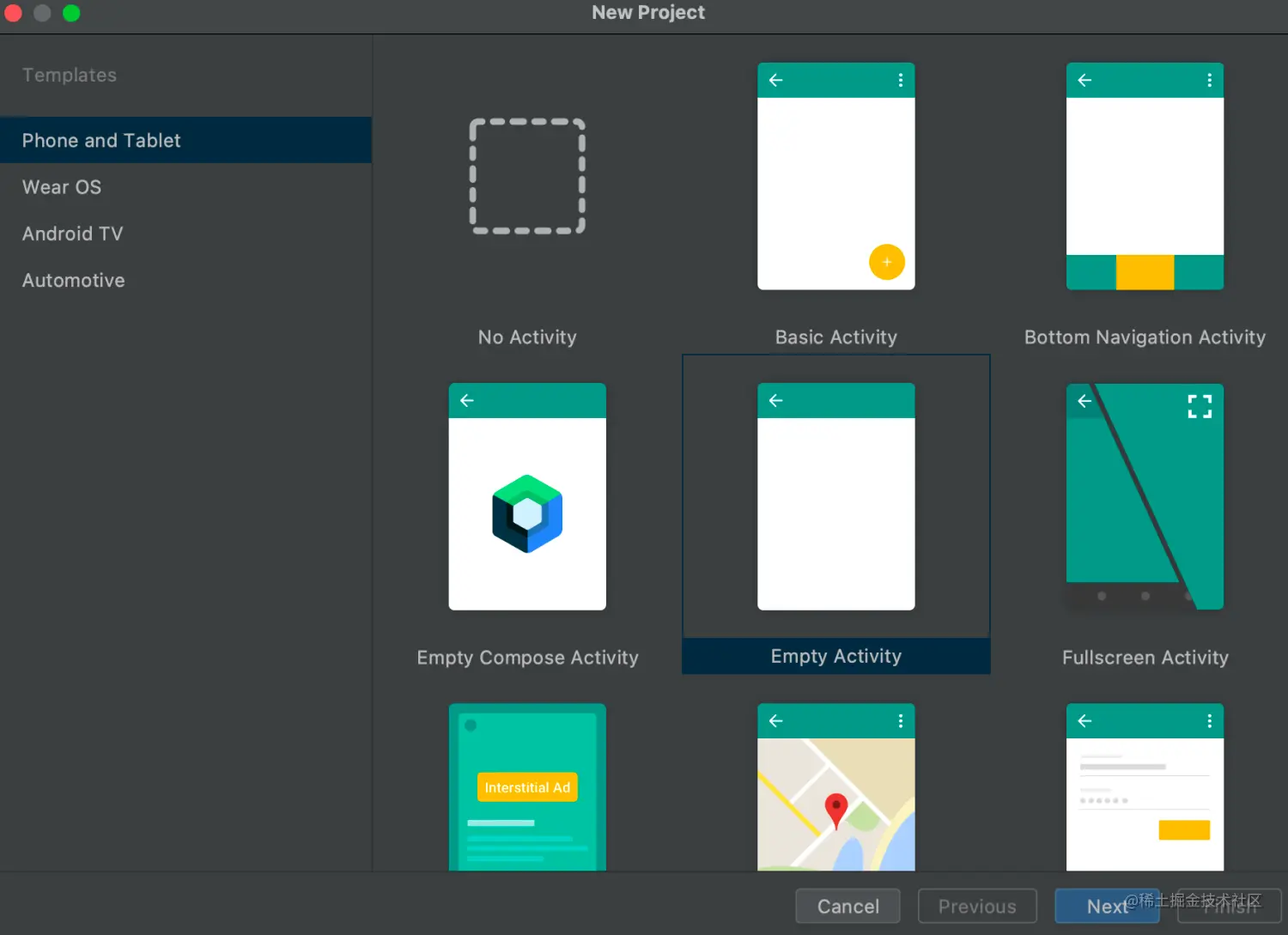 选择中间的空模板 Empty Activity