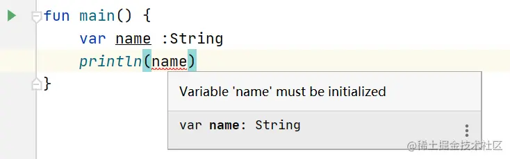 除非另有规定,变量不可为null值,这样一来,运行时崩溃从根源上得到解决。如下图,报错:变量"name"必须初始化: