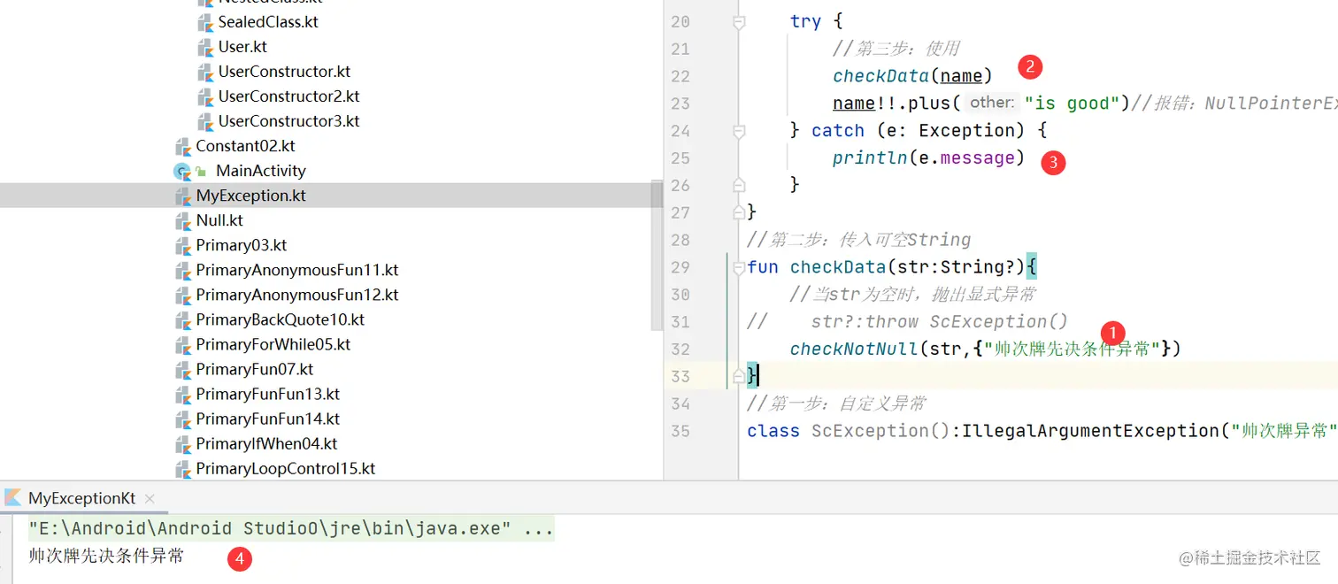 Kotlin中提供一些遍历的内置函数,使用这些函数可以自定义信息的异常,这些函数就是先决条件函数。可以用该种函数自定义先决条件,当满足条件时代码才会执行。