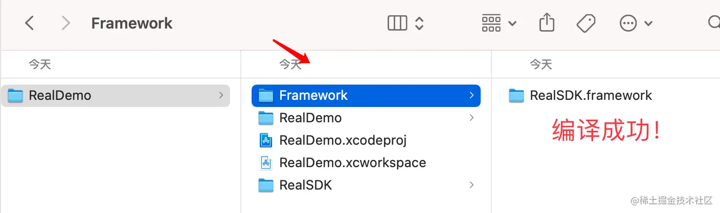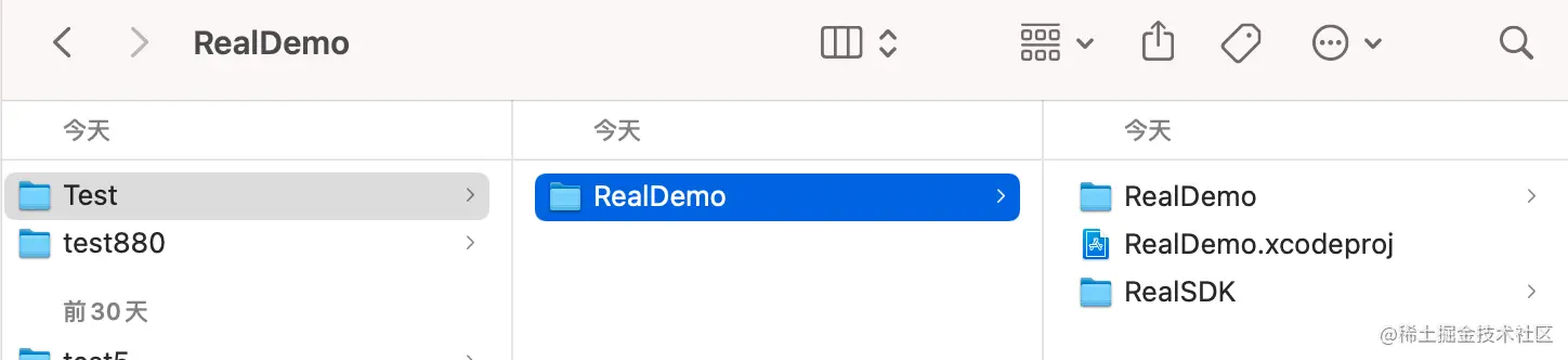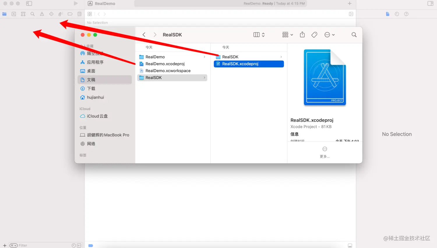 然后我们直接把需要连接的 Framework 工程(RealSDK.xcodeproj)和 App 工程(RealDemo.xcodeproj)拖进来就可以了!