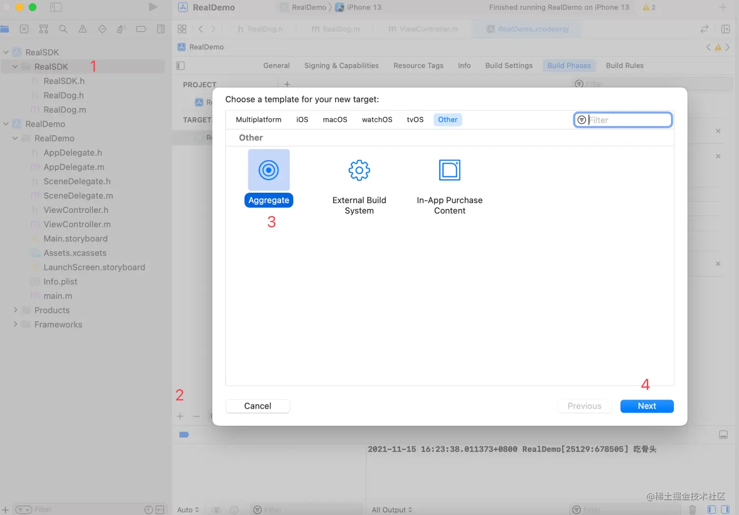 RealSDK Project -> TARGETS -> "+"(左下角) -> Cross-platform - Other -> Aggregate