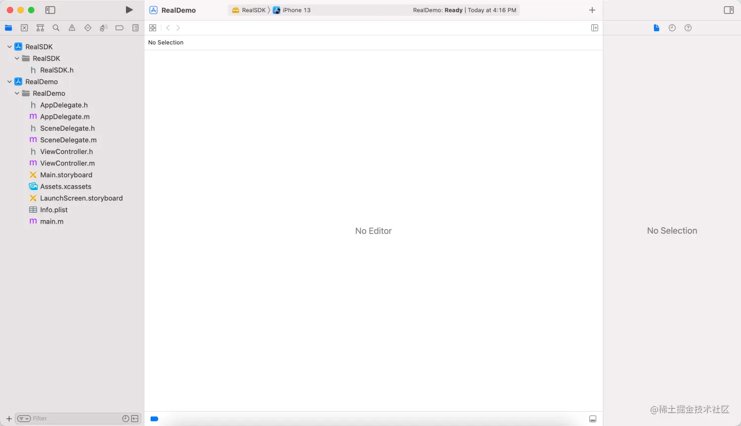 我们需要先打开 RealDemo.xcworkspace,打开后你会发现这里空空如也。