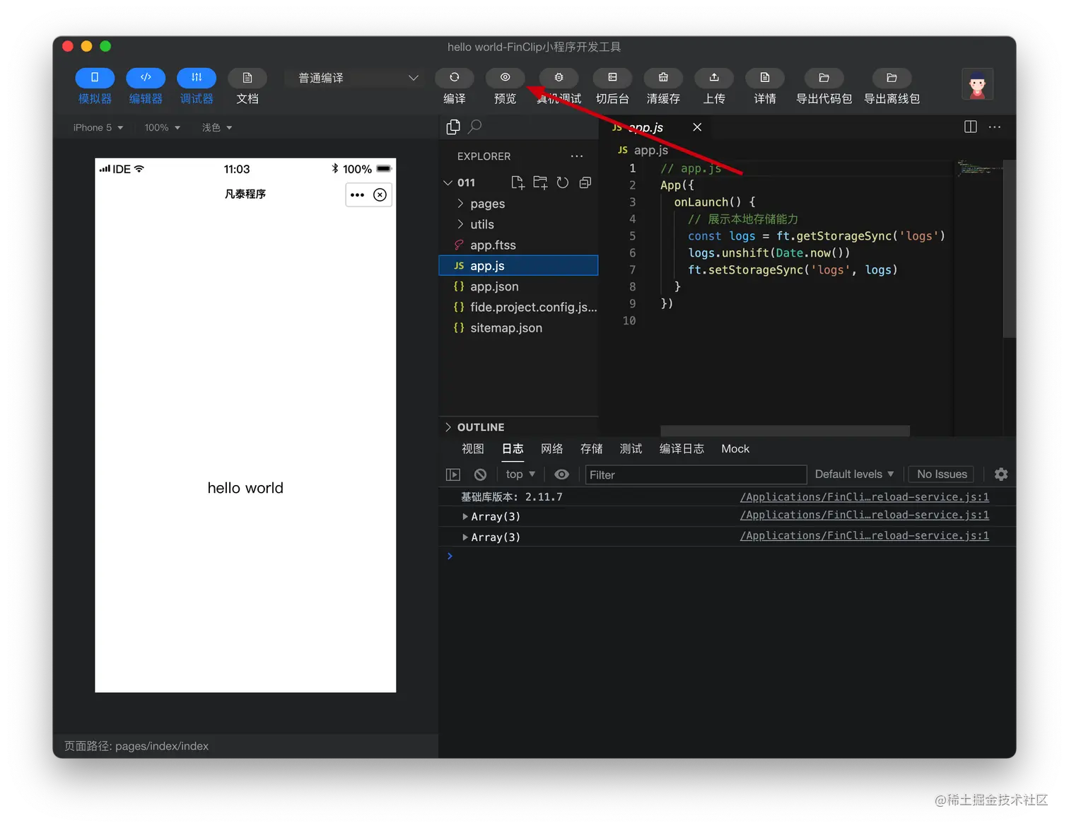 点击预览按钮生成小程序二维码,然后使用 FinClip App 扫码体验即可。